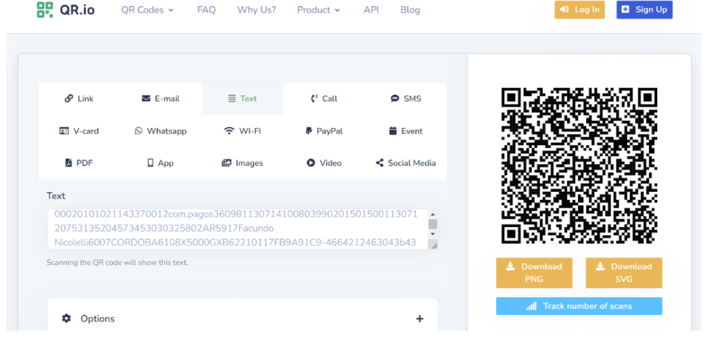 Renderizar el QR string como QR EMVCo, ejemplo en https://qr.io